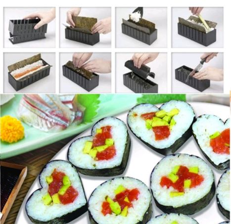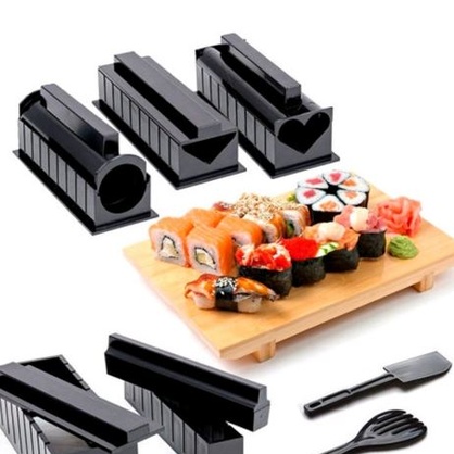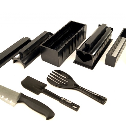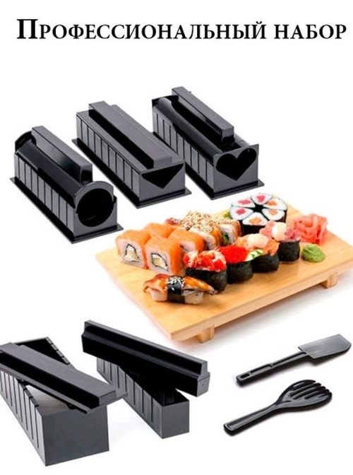 с этим набором ваши блюда японской кухни будут не только вкусными, но и красивыми уже с первой попытки. Набор изготовлен из высококачественного пищевого пластика, что позволяет его использовать без вреда для здоровья. С помощью данного приспособления вы сможете приготовить большой ассортимент различных японских блюд: маленькие и крупные роллы.