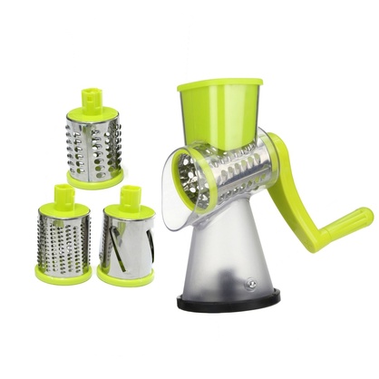 Даже после нескольких лет использования лезвия останутся острыми. Корпус изготовлен из экологичного пластика, который не трескается и не гнется в процессе эксплуатации. Вы можете самостоятельно регулировать скорость нарезки. В отличие от обычной терки, у вас не останется огрызков. В процессе вращения эргономичной ручки еда проталкивается в барабан, где крутится одна из трех насадок.