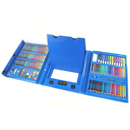 Набор юного художника с мольбертом – это большой кейс цветных фломастеров, красок, мелков, карандашей для рисования c мольбертом - всего176 предметов! Его можно использовать как дома, так и в дороге!