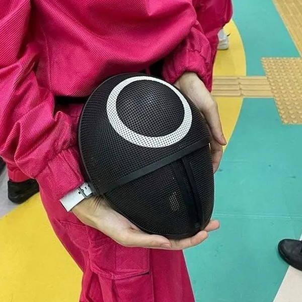 Маска Squid game - блестящий способ выделиться на вечеринке! С такой маской можно сделать крутые видеоролики, атмосферные фотографии, и обращать на себя внимание других людей!