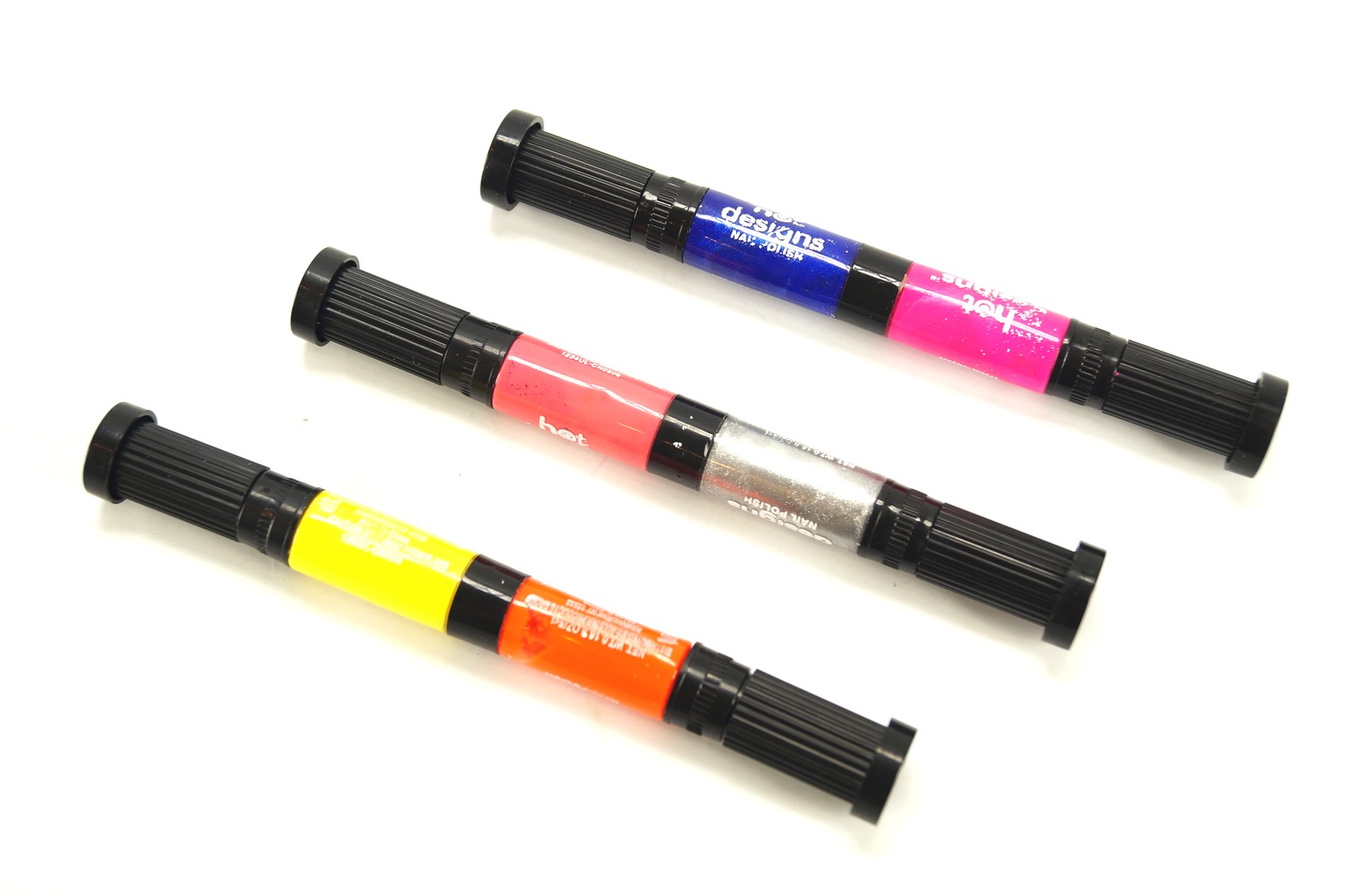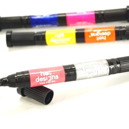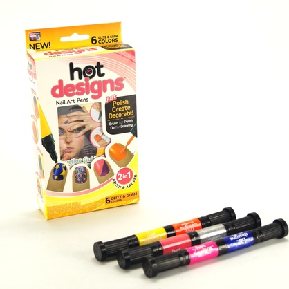 Hot Designs (Хот Дизайн) – это набор маркеров для дизайна ногтей. С его помощью Вы сможете создавать на своих ногтях настоящий профессиональный маникюр, который может дать фору маникюру, сделанному в салоне.В емкости маркера находится цветной лак, а в двойной крышке - кисть и дозатор в виде тонкого стержня.Вы можете сначала нанести лак на весь ноготь кистью, а потом нанести любой узор с помощью стержня-аппликатора. Толщина линии всего 1 мм!