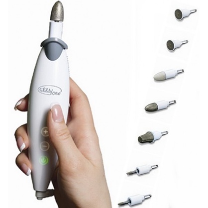Прибор оснащен семью сменными насадками, имеющими стойкое сапфировое абразивное напыление, которое будет служить долгие годы, не стачиваясь и не требуя замены. Отличительная особенность сапфирового напыления, это деликатное удаление омертвевших клеток, при этом полное отсутствие травматичности для живых тканей.