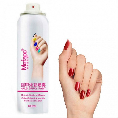 Лак-спрей Mefapo– революционное косметическое средство в аэрозольных баллончиках. Новый лак для тех, кто не любит красить ногти, распылить лак куда проще, нежели нанести на каждый ноготок отдельно. Теперь не придется тратить массу времени на уход за своим маникюром. Ноготки засияют разнообразными глянцевыми цветами, будут выглядеть шикарно и эффектно.Подходит для регулярного использования, благодаря своим компактным размерам и высоким эксплуатационным характеристикам. Высококачественный лак создан без применения токсических компонентов, поэтому безопасен для здоровья пользователя.