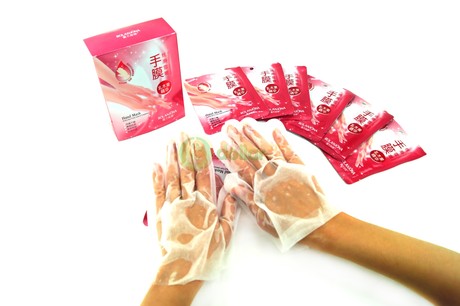 - Через 20-30 минут снимите перчатки. Остатки маски массирующими движениями равномерно распределите на кожу рук.