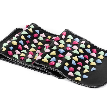 - Коврик оснащен множеством камешков в биологически активных точках, приводит к тому, что во время массажа высвобождаются эндорфины, которые улучшают настроение и положительно влияют на действие нейропептидов - молекул, задачей которых является облегчения боли.