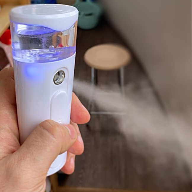 Чтобы начать пользоваться стерилизатором, снимите резервуар и залейте в него обеззараживающую жидкость из комплектного пакетика*, а затем закрепите его обратно. Устройство сразу же готово к работе. Как только вы сдвинете вниз пластину, закрывающую выходное отверстие ультразвукового пьезоизлучателя, дезинфицирующее средство начнет распыляться тонкой, но плотной струей. При этом загорается приятная синяя подсветка.