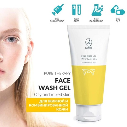 Гель очищающий для лица для жирной и комбинированой кожи Lambre Pure Therapy Face wash gel Dry and sensitive skin