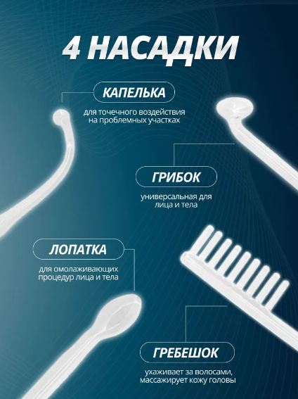 4 сменные насадки: - гребешок - грибок - капля - точка