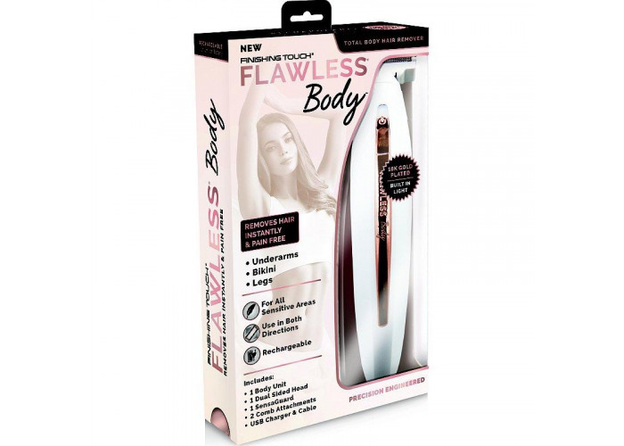 Бритва Flawless Body поставляется с защитным устройством и насадками для триммера, щеткой для чистки и зарядным шнуром. Эта революционная сухая бритва идеально подходит для самых чувствительных зон, таких как бикини, подмышки, колени и лодыжки.