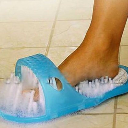 - Поместите ногу в тапочки и двигайте ступнями вдоль скребка для ступней (щетина очистит верхнюю и нижнюю часть ступни, а также места между пальцами).