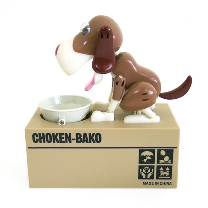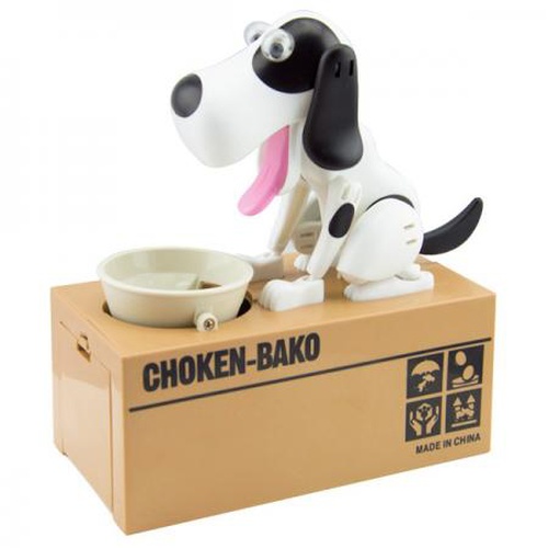 Такие забавные интерактивные копилки купить лучше всего деткам. Они научат их сбережению и просто поднимут настроение. Как только ребенок положит монетку в миску, маленькая собачка будет с восторгом уплетать за щеки вкусное блюдо. При чем будет есть его с такой жадностью, словно год никто не кормил. Миска и голова раскачаются от такого удовольствия. Пока питомец кушает, монетка постепенно начнет приближаться к специальному отверстию в миске и в какой-то момент упадет в коробку. Пес наконец-то наестся и успокоится. Но только стоит снова положить монетку, так все повторится. Интерактивная копилка Пес-воришка займет ребенка на длительное время, уж очень это для него интересно.