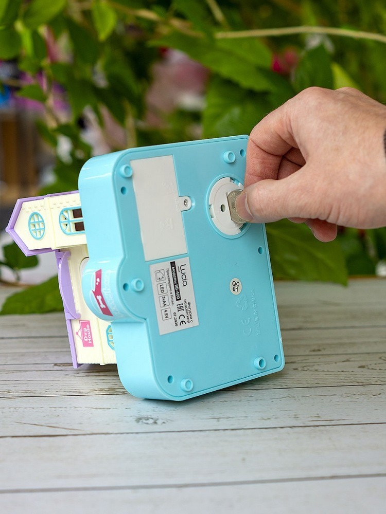 Для того, чтобы достать монетки необходимо отвернуть круглую заглушку в основании домика.