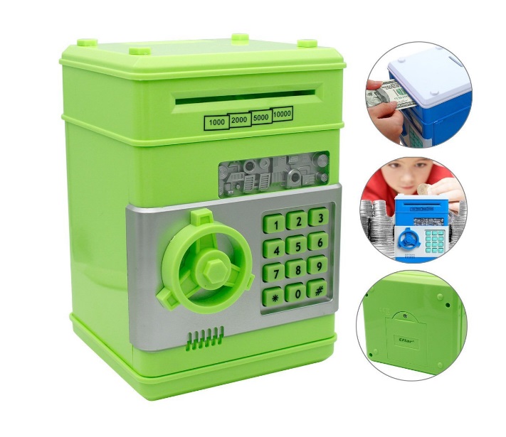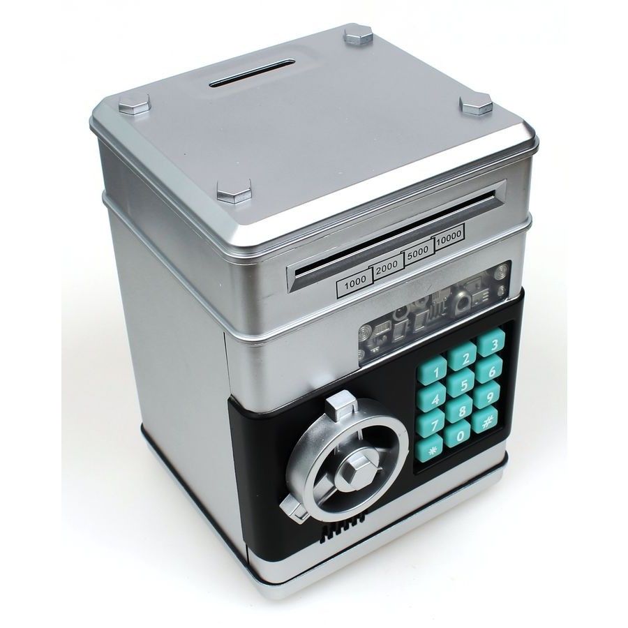 Копилка с кодом в виде сейфа способна надежно хранить как монеты, так и купюры в любой валюте и номинале.