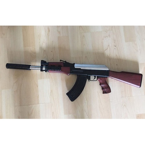 Пневматический автомат АК-47 снабжен специальным пружинным механизмом, что позволяет стрелять пульками на значительное расстояние. С помощью пневматического автомата можно вести огонь по мишеням, тренируя свою точность.