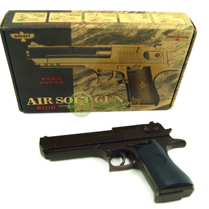 Игрушечный пневматический металлический пистолет AirSoft Gun K111D - изготовлен из металла, что делает его долговечным, стреляет пульками 6 мм.