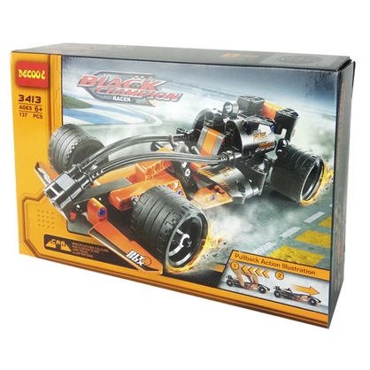 Конструктор для мальчиков, 137 деталей. Из элементов набора можно собрать гоночный баллид. Мощный двигатель позволят машинке легко развивать высокую скорость и входить в крутые виражи.