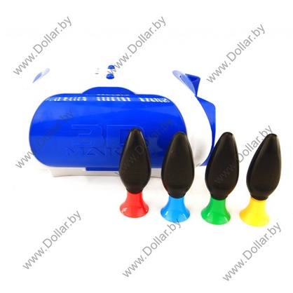 В набор для создания объёмных моделей входит 3D Maker, представляющий собой устройство с ультрафиолетовой лампой, 4 тюбика с гелями разного цвета: синий, желтый, красный и зелёный, 4 трафарета, 4 формочки для моделирования, 1 дополнительный трафарет для свободного моделирования и подробная инструкция. Кстати сказать, тюбики с гелем очень удобной для выдавливания формы, что облегчает работу и доставляет исключительно положительные эмоции! Лампа работает от трёх батареек типа АА/LR5 1,5V, которые в комплект не входят. Особенностью набора, помимо перечисленного, можно назвать и красивую подарочную картонную упаковку 35х12х25 см.