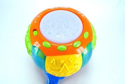 - Моторика: Играя с музыкальным барабаном, малыш будет развивать мелкую моторику рук. Интересная форма и яркие цвета игрушки будут мотивировать ребенка к игре.