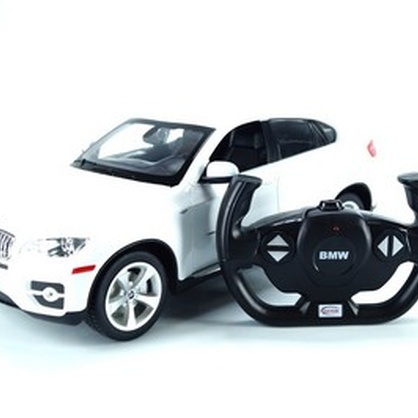 Радиоуправляемый кроссовер BMW X6 от Rastar, выполненный в масштабе 1:14, воспроизводит большой автомобиль BMW X6 – мечту любителей скорости и комфорта. Лицензионная игрушечная модель точно повторяет дизайн оригинала: четыре дверцы, четыре места, скошенная крыша-купе. Дверцы машинки не открываются, но через стекла можно рассмотреть интерьер, оформленный в серых тонах. Игрушка изготовлена из сверкающего пластика, который настолько прочен, что не разбивается при ударах о каменную стену на полной скорости. Любителям радиоуправляемых моделей будет приятно узнать, что скорости этой машинки высокие: BMW X6 от Rastar разгоняется аж до 12 км/час. Именно поэтому мы рекомендуем данный внедорожник на пульте управления как самый желанный подарок для фанатов игрушечных гонок.