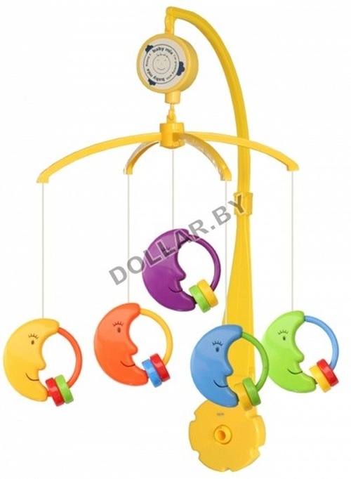 Пластмассовые карусельки с музыкой на детскую кроватку. Разноцветные игрушки, которые также могут быть использованы как отдельные игрушки, скрашивают малышу время, проведеное в кроватке, а успокаивающая мелодия, доносящаяся из механизма, помогает крохе заснуть.