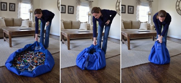 Если Вам надоело собирать игрушки, кубики, машинки, детали конструктора после того, как дети наигрались и улеглись спать, воспользуйтесь Ковриком Toy Storage Bag, который в считанные секунды соберет игрушки в сумку для хранения.
