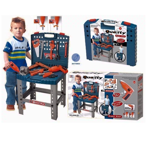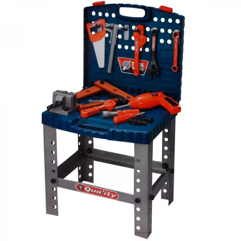Детский набор инструментов 008-21 представляет собой удобный чемоданчик, размерами: 39,5 см x 36 см x 8 см и сложенным в него инструментом. С помощью этого набора Ваш маленький мастер сможет овладеть азами работы с дрелью, молотком, гаечным и разводным ключом, отверткой, пилой, гайкой, шурупом и другими видами инструментов. Такой набор развивает навыки работы с инструментами, с предназначениями каждого предмета, что в дальнейшем малышу поможет в работе с настоящими инструментами для ремонта бытовых предметов в доме. Детский набор инструментов Quality Super Tool изготовлен из качественного пластика и совершенно безопасен для детей. Молодой мастер сможет превратить свой удобный чемоданчик для переноски инструментов в самый настоящий верстачок, на тыльной стенке которого удобно располагаются все инструменты.