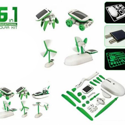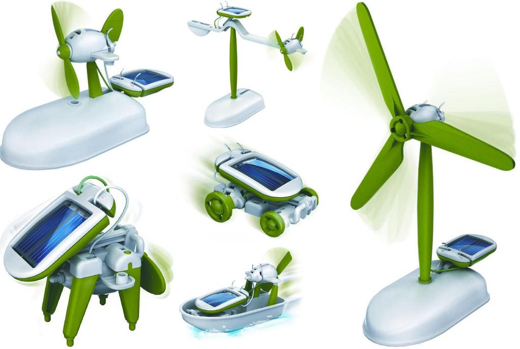 Конструктор 6 в 1 позволит принять участие Вашему юному изобретателю в сборке эко-игрушки и понять все основные принципы работы цепи питания и альтернативной энергии (солнечной батареи). После окончания сборки роботы-игрушки будут двигаться под действием солнечного света или лампы, можно координировать движения игрушек с помощью зеркала. Для сборки игрушек можно воспользоваться инструкцией, которая входит в комплект набора 6 в 1.