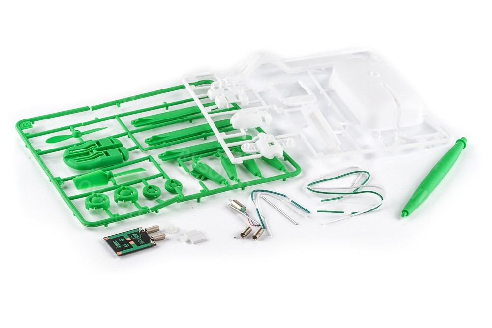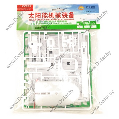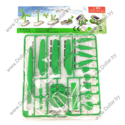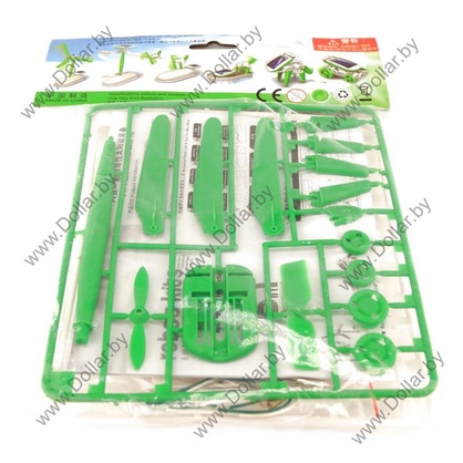 Все элементы легко собираются и надежно крепятся между собой, сборка не требует применения клея и спайки. В комплекте предусмотрены 22 пластиковых делали, микро-двигатель, солнечная батарея и провода.
