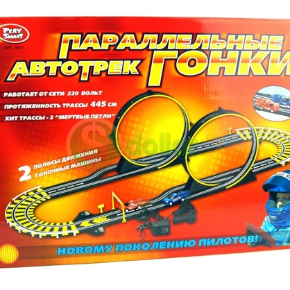 Автотрек Параллельные гонки развивает волю к победе, координацию. Размеры упаковки: 53x32см Работает от сети.
