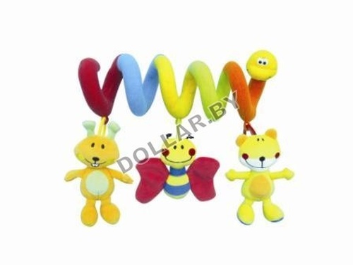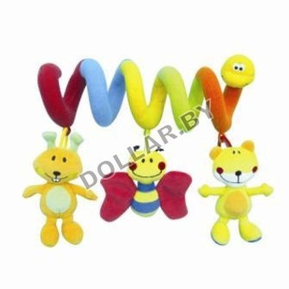 Мягонькая, плюшевая подвесная игрушка в форме спиральки, прикрепленная к коляске, привлекает внимание ребенка, делая ежедневную прогулку более интересной.