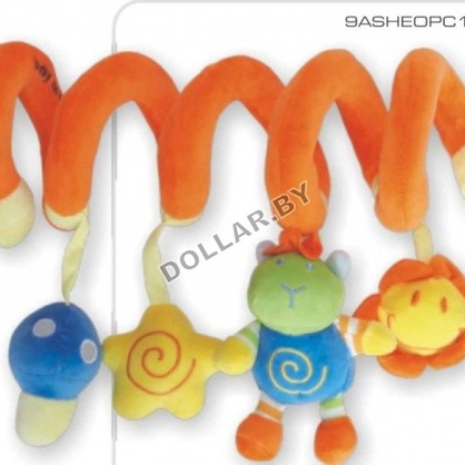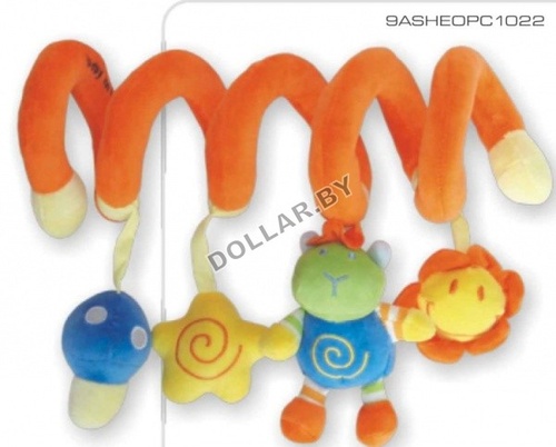 Мягонькая, плюшевая подвесная игрушка в форме спиральки, прикрепленная к коляске, привлекает внимание ребенка, делая ежедневную прогулку более интересной.