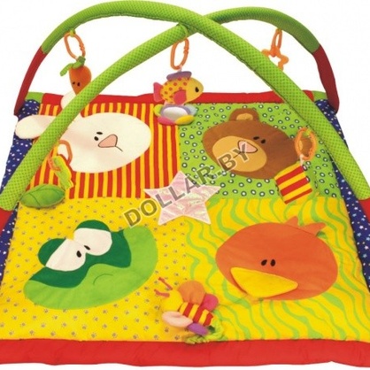 Мягкая, разноцветная ткань с изображениями животных обеспечивает безопасность малыша во время игры. Подвешенные элементы после отсоединения могут быть использованы как отдельные погремушки и мягкие игрушки, а звуковые эффекты способствуют тому, что кроха с интересом познает мир и правильно развивается. Развивающий коврик дает родителям неповторимую возможность наблюдать за развитием ребенка. Коврик идеален для безопасных игр ребенка на полу.