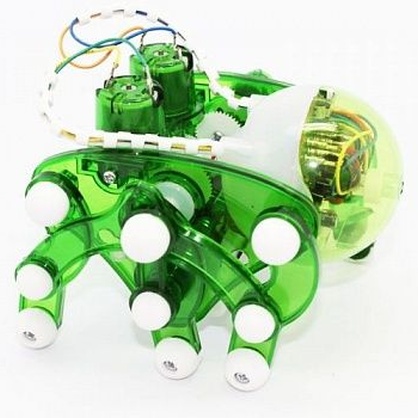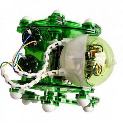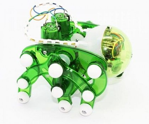 Корпус робота выполнен из прозрачного пластика, что позволяет ребенку наблюдать за работой механизмов собранной модели.