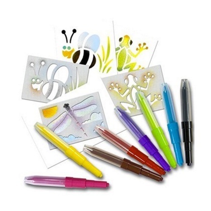 Принцип рисования воздушными фломастерами - метод распыления. Рисовать воздушными фломастерами можно по трафарету или в свободном стиле, тогда получится очень красивый фон для аппликации. Можно использовать один цвет или смешивать несколько. Чтобы регулировать интенсивность цвета, можно дуть сильнее или слабее, подольше задерживаться на отдельных частях рисунка или быстро проводить фломастером, поднимать фломастер повыше и т.д. - все зависит только от Вашей фантазии!