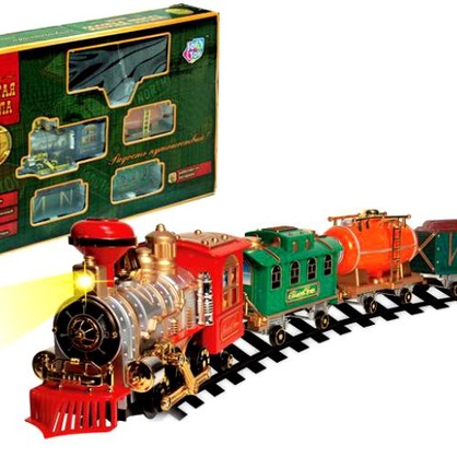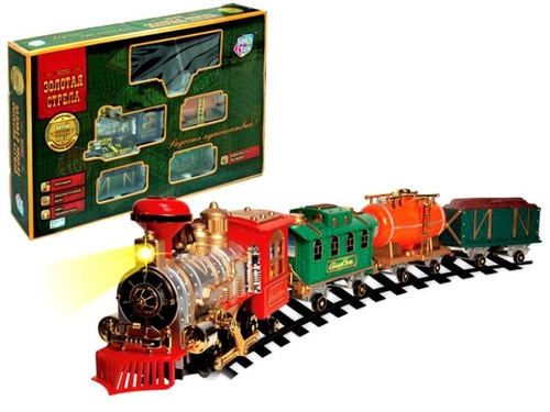 Железная дорога Экспресс "Золотая стрела" работает на радиоуправлении от батареек. Двигается вперёд, назад, набирает скорость, имеет свет прожектора, 4 мелодии, реалистичный дым. Игрушка развивает у детей фантазию, воображение, творческие способности, пространственное мышление.