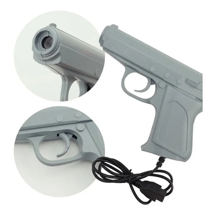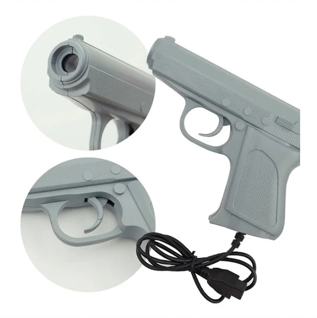Игровая приставка SUPER 8 bit GAME модель TY-368 с пистолетом и двумя игровыми джойстиками — это поддержка игр разных жанров + игр для моделей со световым пистолетом, неразъёмный шнур в двойной изоляции, совместимость со стандартными картриджами, и всё это в новой матовой упаковке с ярким оформлением и лакированными элементами.