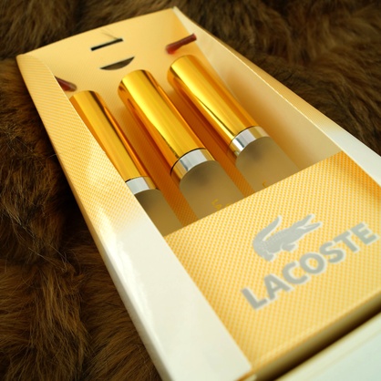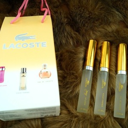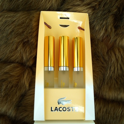 Лучшие женские ароматы Lacoste в подарочном наборе из трех миниатюрных флаконов духов.