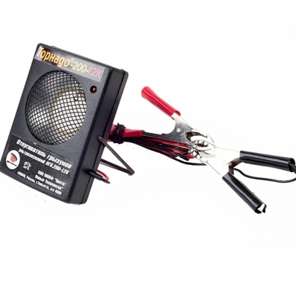 В отличие от ультразвукового отпугивателя “Торнадо 200” – это электронное ультразвуковое устройство, а оно точно такое же по своей звуковой мощности имеет иную систему питания. Оно имеет электрический шнур с клеммами, что позволяет подключить его к аккумулятору автомобиля и разместить в подкапотном пространстве или в салоне автомобиля. Все зависит от того, что именно Вы хотите защитить, но лучше всего разместить отпугиватель снаружи и установить таким образом, чтобы ультразвук, отражаясь от бетонных стен гаража, его дверей и других поверхностей, полностью наполнил его акустическими волнами высокой частоты.