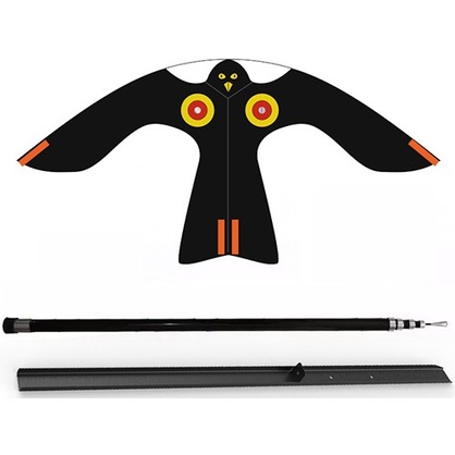 - Усиливает эффективность действия биоакустических отпугивателей. При совместном использовании с популярными звуковыми отпугивателями, работающими на основе криков хищных птиц, эффективность отпугивания значительно возрастает, т.к. пернатые будут не только слышать, но и видеть своего врага.