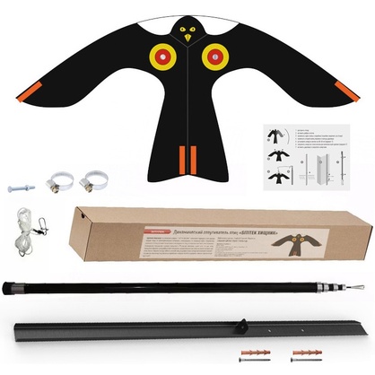 Динамический отпугиватель птиц "SITITEK ХИЩНИК" разработан и производится в России, он выполнен в виде крупной хищной птицы и имеет ряд усиливающих отпугивающий эффект решений. Устройство защищает от большинства пернатых вредителей (голуби, вороны, воробьи, сороки, грачи, чайки и др.) сады, огороды, крыши зданий, складов, зернохранилищ и т.д. В комплекте поставляется телескопический флагшток длиной 4,5 или 6,3 м (на ваш выбор), который служит для установки отпугивателя на нужной высоте.