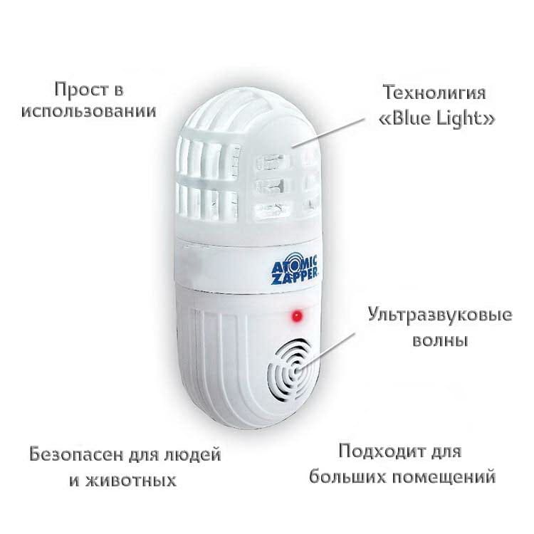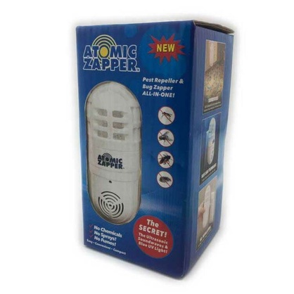 Atomic Zapper сочетает в себе функции отпугивателя и уничтожителя. Он борется со всеми типами грызунов и ползающих насекомых с помощью специальных ультразвуковых волн, а летающих насекомых он приманивает специальным светом и убивает слабым электрическим током.