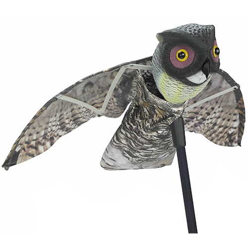 - Отпугивает большинство видов птиц. В природе филин является довольно опасным хищником, жертвами которого становятся многие небольшие птицы (скворцы, дрозды и пр.) и грызуны (хомяки, мыши-полевки). Отпугиватель "Филин" имеет невероятное сходство со своим живым прототипом, а его крылья реалистично трепещут на ветру, что заставляет птиц, увидевших его, немедленно ретироваться.