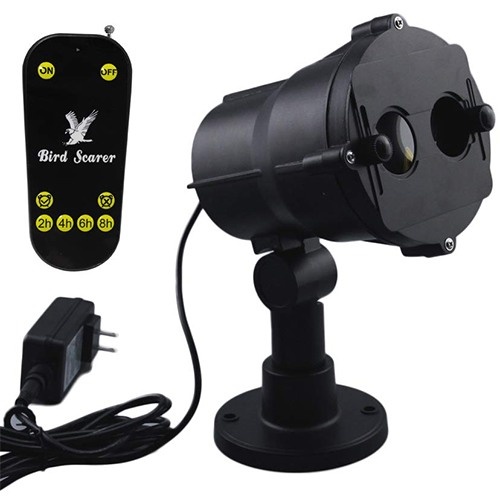 Отпугиватель имеет 2 излучателя, которые генерируют лазерные лучи красного и зеленого цветов. Хаотически перемещаясь, лучи многократно отражаются от любых поверхностей: пола, земли, стен, заборов и т.п., образуя своеобразную световую картину, которая постоянно изменяется. Для птиц красный и зеленый свет — это сигнал опасности. К тому же, яркие лучи лазера, попадая в глаза, вызывают болевые ощущения и тем самым усиливают чувство паники у пернатых. Ни одна птица не сможет выдержать такого воздействия и будет вынуждена покинуть ваш объект или территорию. Подобные лазерные установки для отпугивания птиц часто используются на больших фермах, в аэропортах, колхозах, зернохранилищах и т.д.