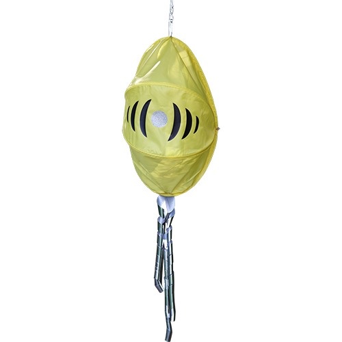 - Качественные материалы и продуманная конструкция. Отпугиватель имеет тканевое покрытие ярко-желтого цвета на основе нейлоновых нитей с водоотталкивающей пропиткой. Окраска ткани устойчива к воздействию ультрафиолетового излучения: не выгорает на солнце и не теряет яркость со временем. Ткани также не страшны мелкие порезы. Устройство комплектуется карабином-вертлюгом, который препятствует запутыванию при вращении. С учетом малого веса самой полусферы это позволяет отпугивателю легко вращаться даже от слабого ветра.