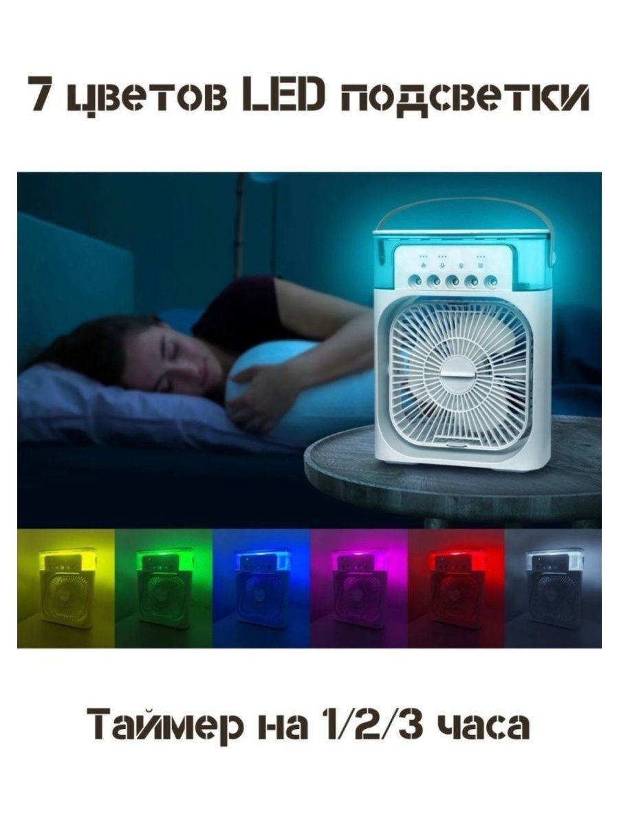 Увлажнитель и очиститель воздуха: устройство повышает влажность в помещении и дополнительно очищает воздух, оказывая благоприятное воздействие на здоровье всей семьи. Выполнен в приятном белом цвете, который подойдет для любого интерьера. Устройство быстро создает приятный микроклимат рядом с пользователем. С его помощью вы сможете наслаждаться прохладой где угодно: на кухне, в кабинете, в гостиной. Устройство компактно и его можно взять с собой на работу. Удобен для индивидуального использования дома, на даче, на работе, в машине.Есть режим подсветки-7 вариантов свечения, можно настроить по настроению или отключить совсем.