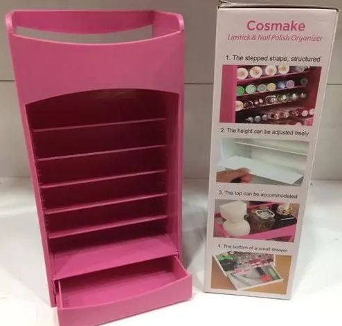 Такой органайзер, вы сможете его поставить в спальне, в ванной комнате. И все необходимое будет у вас под рукой. Вам больше не придется искать косметику по квартире. Органайзер компактный и прост в пользовании. Органайзер имеет 9 направляющих, и 5 полок, что позволит Вам устанавливать полки наиболее удобным способом в зависимости от размера косметики.У Вашей сестры, любимой девушки, мамы - день рождения ? И Вы не знаете что подарить? Органайзер-косметичка Cosmake Lipstick & Nail Polish Organizer - это то, что Вам нужно!