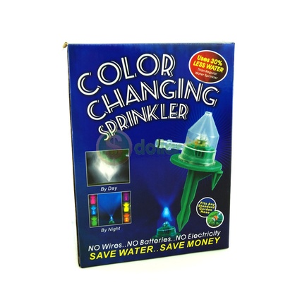 Color Changing Sprinkler может менять цвет которым светится светодиод: розовый, фиолетовый, голубой, жёлтый, зелёный или оранжевый.