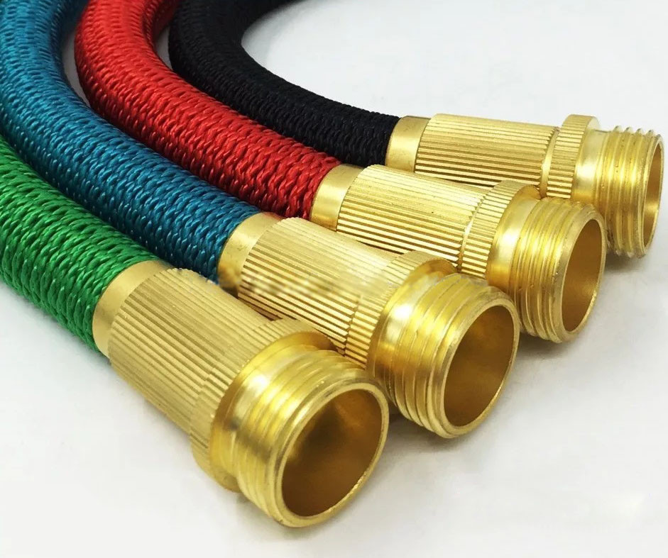 Шланг оборудован латунными фитингами и при поступлении воды, он самостоятельно начинает разворачиваться и удлиняться, а как только вы выключите воду, он вернется к своим первоначальным размерам. И никаких петель и узлов, которые так выводили вас из себя при поливе старым резиновым шлангом! Секрет такого перевоплощения таится в конструкции шланга.
