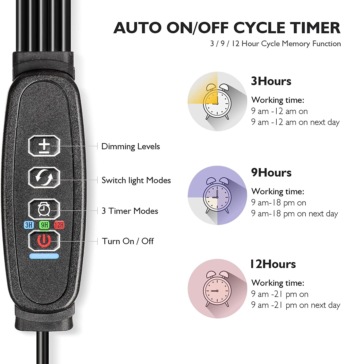 К достоинствам относится функция регулировки уровня света - 5 уровней яркости. Вы можете регулировать яркость в соответствии с различными этапами роста растений. А функция таймера в соответствии с вашими настройками позволит лампе самой включаться и выключаться, и работать на протяжении установленного времени.
