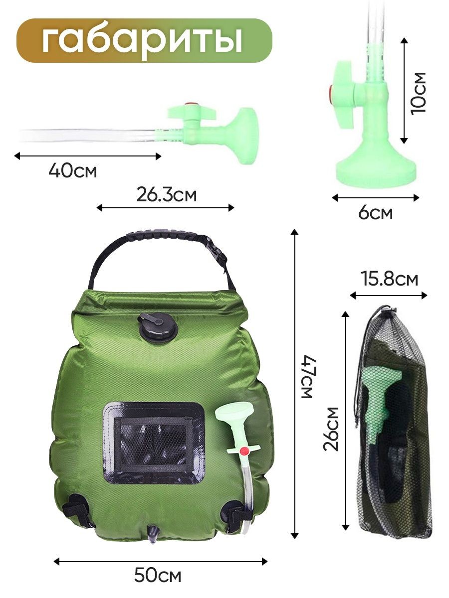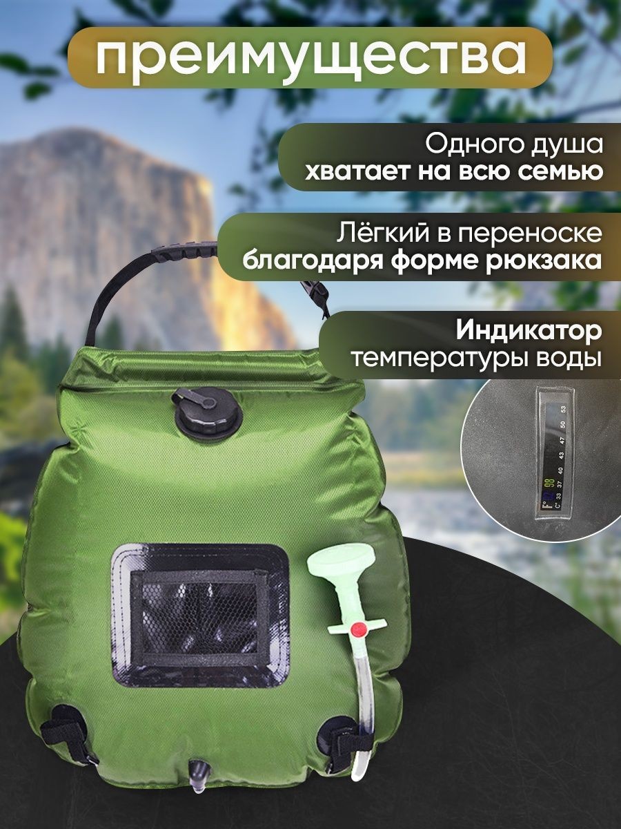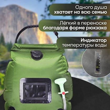 Походный душ изготовлен из высококачественных и прочных материалов, которые не боятся воздействия солнечных лучей, влаги и температурных перепадов. Он прекрасно подходит для использования в походах, на пикниках, кемпинге, на даче или на пляже.